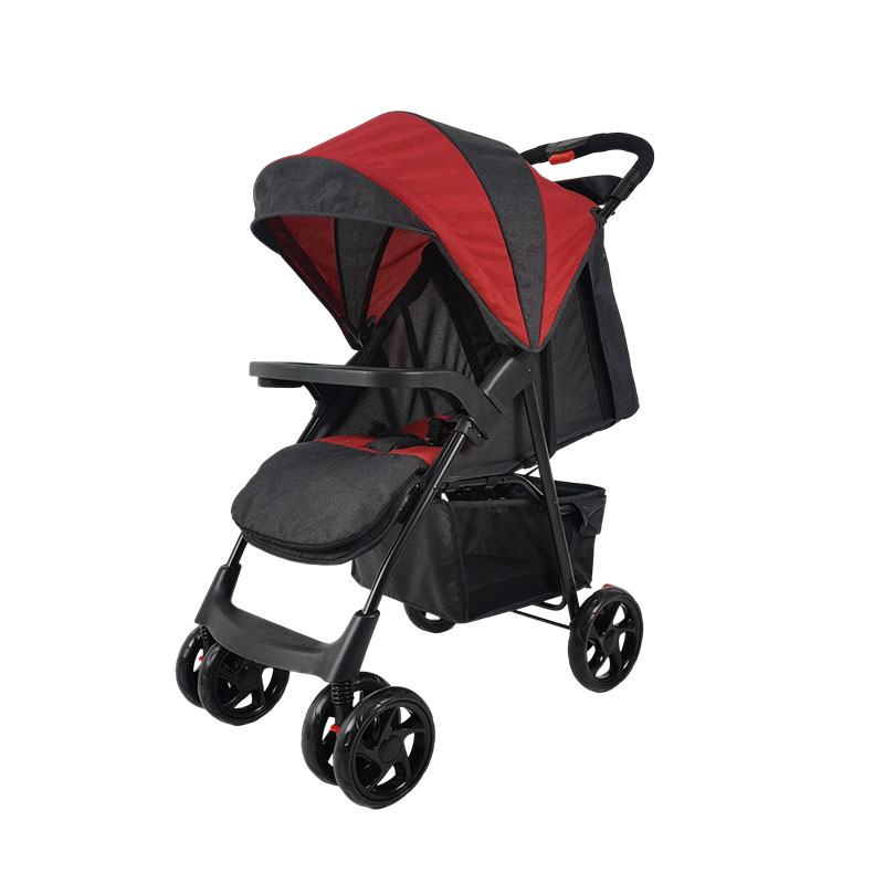 (单独推车) 纸箱尺寸:42*22*76.5 单台包装1pc/ctn 毛净重:6.3/7.0KGS 980辆/40HQ 配提篮包装尺寸 纸箱包装尺寸 :46X32X95.5cm 1套/箱 540套/40HQ 单手收车,带上上餐盘, 带有前扶手可以换餐盘, 蓬上带有天窗及后披有奶瓶袋, 座身多段调节, 带有菜篮, 可以配提篮 轮子前轮7英寸,后轮8英寸